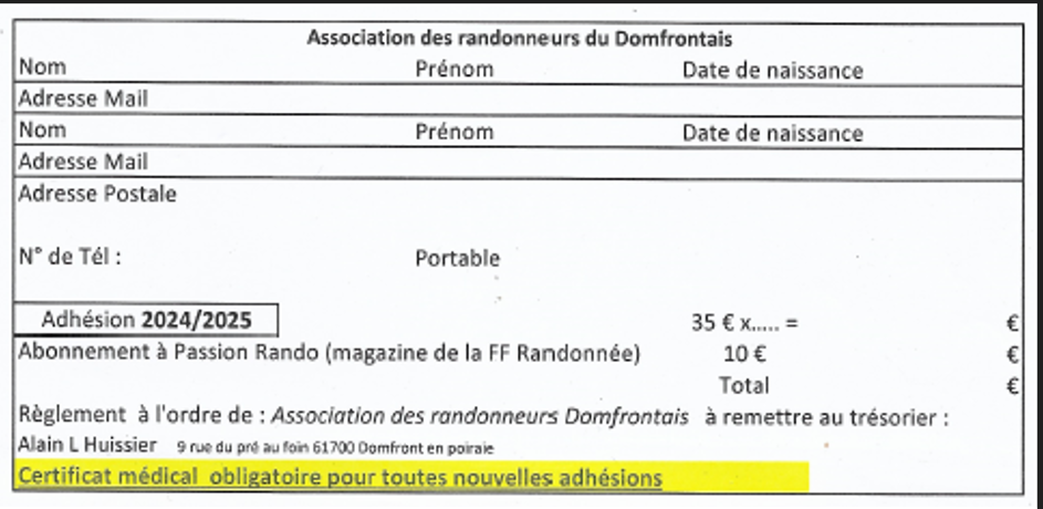 Formulaire adhésion